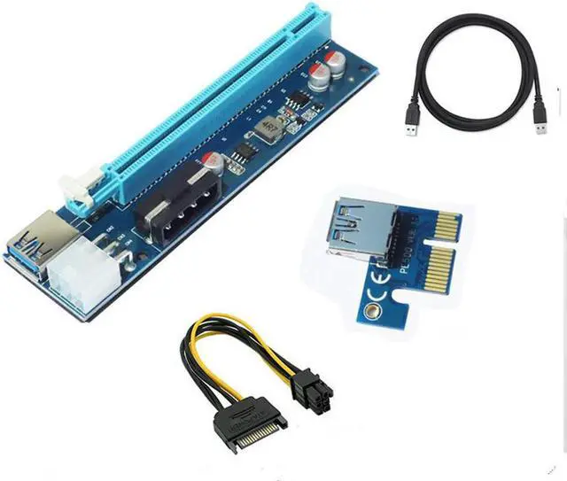 • 6 pin & 4pin PCIe PCI-E PCI Express Riser Card 1x to 16x USB 3.0 Data Cable SATA to 6Pin Power Supply for BTC Miner Machine