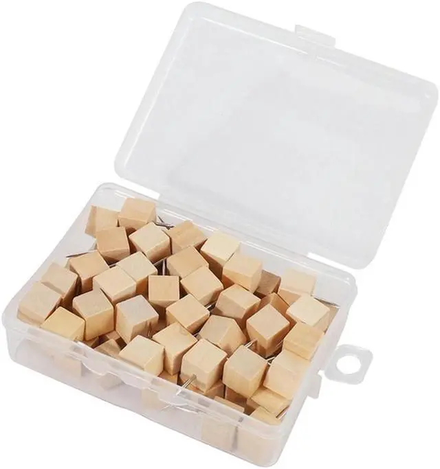 • 60pcs Square Wood Decorative Push Pins, Wood Head and Steel Needle Point Thumb Tacks for Photos, Maps and Cork Boards