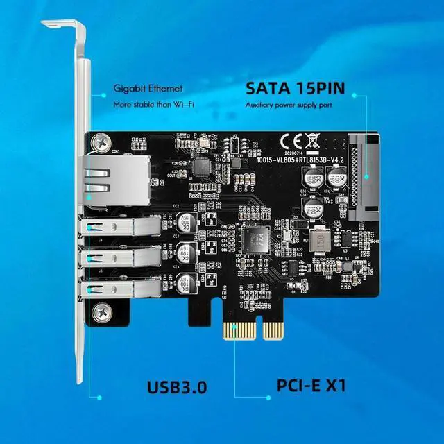 • MAIWO 3 Port USB3.0 Expansion Card PCIE X1 To 5GBPS Hub Docking Station RJ45 Gigabit Ethernet 1000Mbps Desktop Adapter Converter