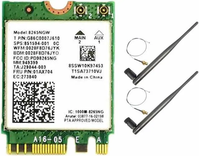 • AC8265 Card+6DB Antenna Network Adapter For Jetson Nano 300Mbps+867Mbps 2.4Ghz 5Ghz Dual Band NGFF BT4.2 Module