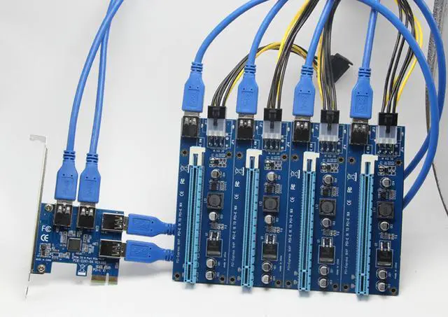 • PCI-e Express 1X To 4 Port PCIE 16X Multiplier HUB Riser Adapter Card w/1.96ft USB 3.0 Cable