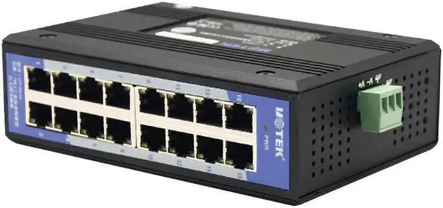 UT-6516 16 port industrial grade non-managed Ethernet switch 10/100Mbps auto negotiation full duplex half duplex Auto MDI/MDI-X