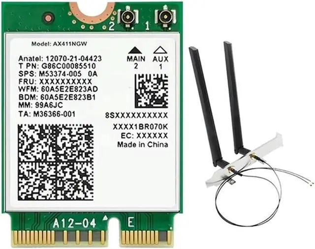 • For AX411 Card+2X8DB Antenna 6E Cnvio2 BT 5.3 Tri-Band 5374Mbps Module For Laptop/PC Win10/11-64Bit