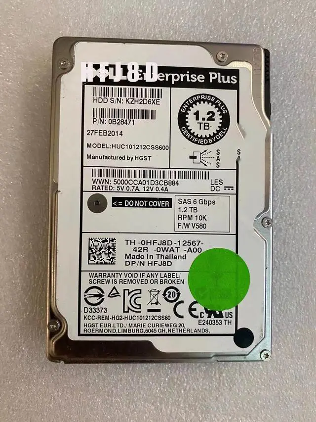 For Dell-HFJ8D Equallogic 1.2TB 10K 6Gb/s 2.5 inch SAS HDD HUC101212CSS600 0HFJ8D,