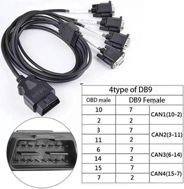 • FOR OBD2 16 Pin Wiring Cord 1 Male to 4 DB9 Interface For RS232 OBD 2 Cable Diagnostic Tool Cable Serial Port RS232 Interface Cable