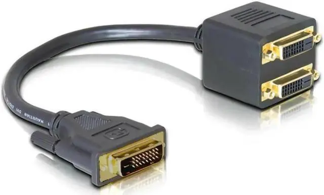 • FOR DVI Male to 2 DVI Female Adapter cable Single Link DVI Splitter 1 to 2 Port Y Extension Cable Adapter for PC HDTV Black