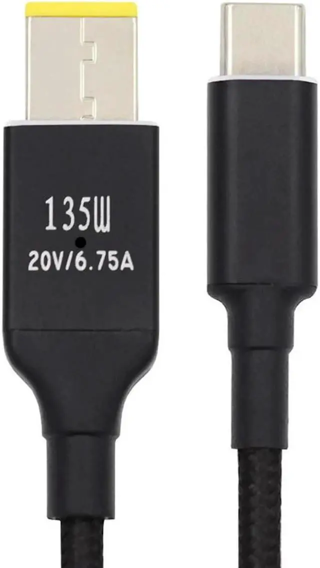 Aomoproing FOR For X1 Y7000P Laptop DC20V 6.25A 135W Power PD Cord Type-C USB-C to DC Rectangle 11.0*4.5mm Cable