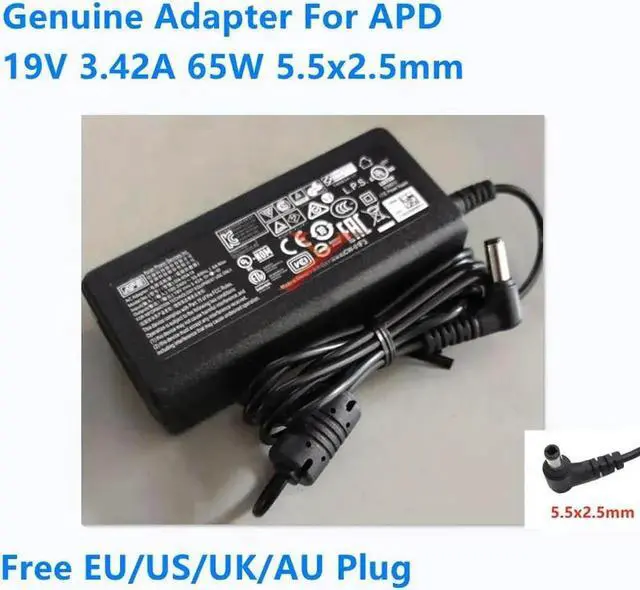 • 19V 3.42A 65W 5.5x2.5mm APD DA-65A19 DA-65C19 Power Supply AC Adapter For Monitor Laptop Charger
