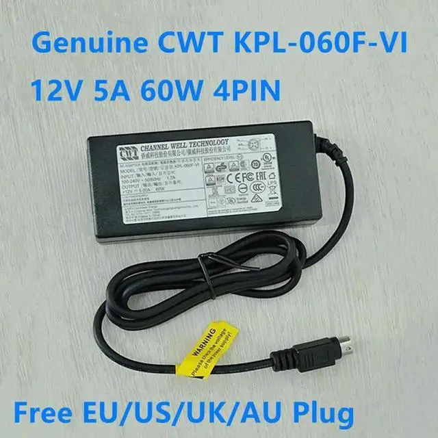 • Aomoproing CWT KPL-060F-VI 12V 5A 4PIN 60W AC Adapter Charger For 7816HW 7808HW Monitor Display Power Supply Charger