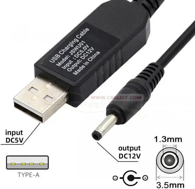 Aomoproing FOR Power Plug Barrel Voltage Riser Boost 100cm USB 2.0 Type-A DC 5V to DC 12V 3.5x1. m 5.5x2.1mm 5.5x2.5mm Connector Cable