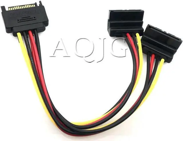 Aomoproing FOR 1PCS 90 SATA 15-Pin Male to 2 x 15P Female Y Splitter Adapter Power Cable