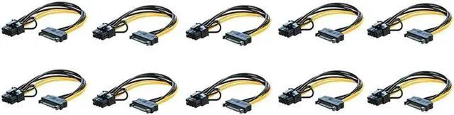 Aomoproing FOR 10 Pcs 15 Pin 15Pin SATA Male To ( 6+2 ) 8 Pin 8Pin Pcie Female Power Converter Cable