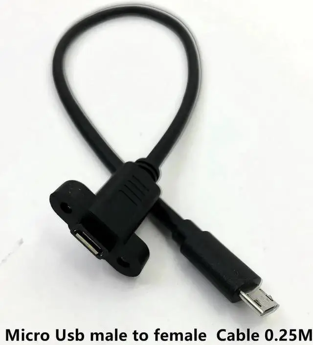 • FOR Micro USB USB 2.0 Male Connector to Micro USB 2.0 Female Extension Cable Pitch 17.5mm With screws Panel Mount Hole
