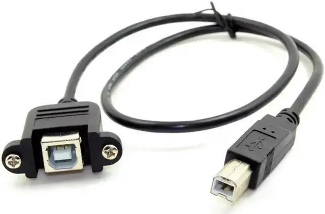 • FOR USB 2.0 B Type Male to Female Printer Scanner Hard Disk Extension Cable with Screws for Panel Mount 50cm