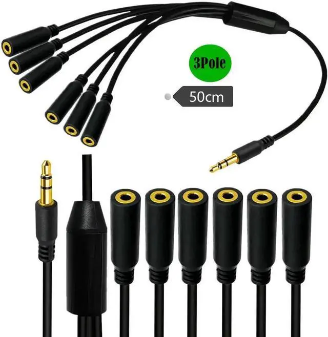 Aomoproing FOR Gold-Plated 3.5mm (1/8") TRRS 3-Pole/2-Rings Male to 6x Female 3.5mm TRRS 3-Pole/2-Rings Stereo Splitter Audio Cable 0.5m
