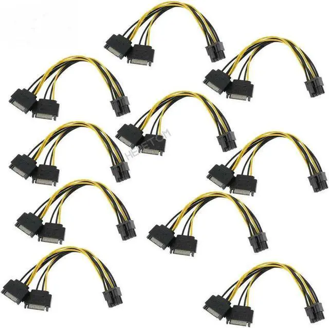 • Aomoproing FOR 10PCS Dual 15 Pin Male Cable To (6+2) 8 Pin Male PCIE PCI Express Video Card SATA Power Cable Adapter Data Cables 20CM