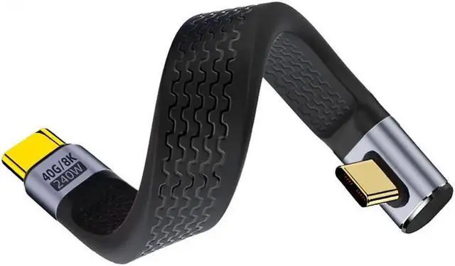 • Aomoproing FOR Low Profile Angled Right Angled 240W Type-C USB-C Male to Male USB4 40Gbps 100W Flat Slim FPC Data Cable for Laptop Phone 13cm
