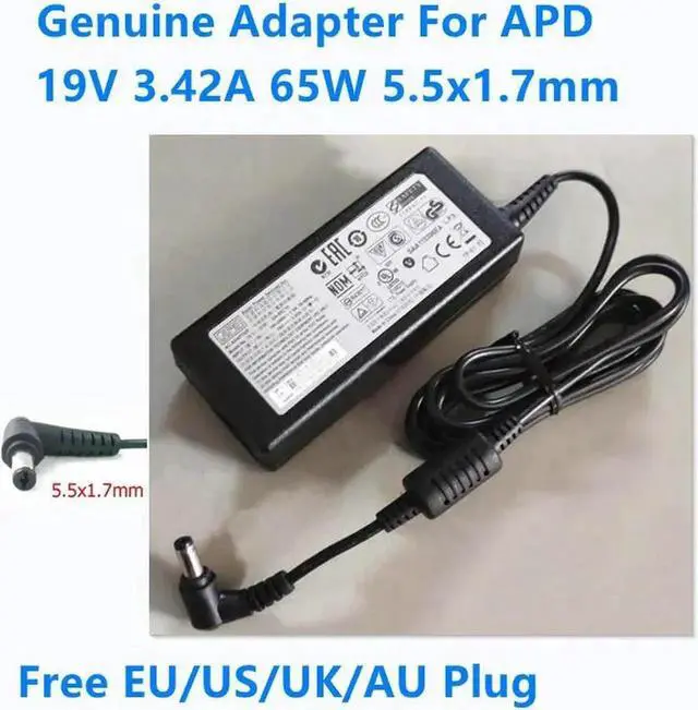 • Aomoproing 19V 3.42A 65W 5.5x1.7mm APD DA-65C19 Power Supply AC Adapter For Laptop Charger