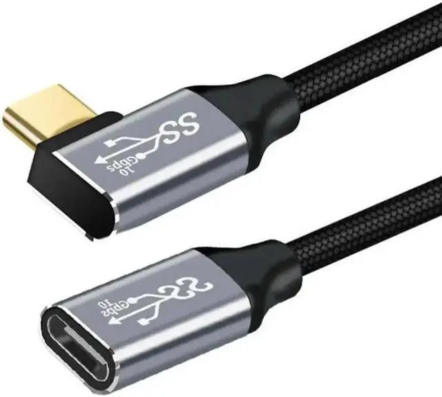 • FOR Female Extension Data Cable 10Gbps 100W Angled USB-C USB 3.1 Type C Left Right