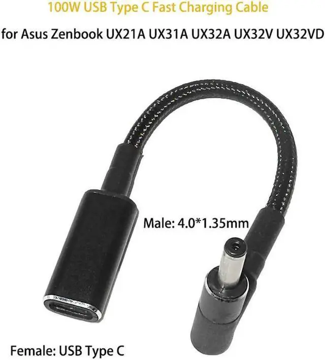 • Aomoproing 100W USB 3.1 Type C Fast Charging Cable for Zenbook UX31A UX32A UX32V UX32VD USB-C to 4.0*1.35mm Plug Adapter Connector