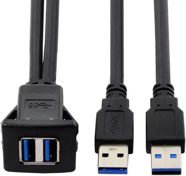 Aomoproing FOR 1m Waterproof Dual USB 3.0 Extension Latch Mount Car AUX Cable for Dashboard Panel