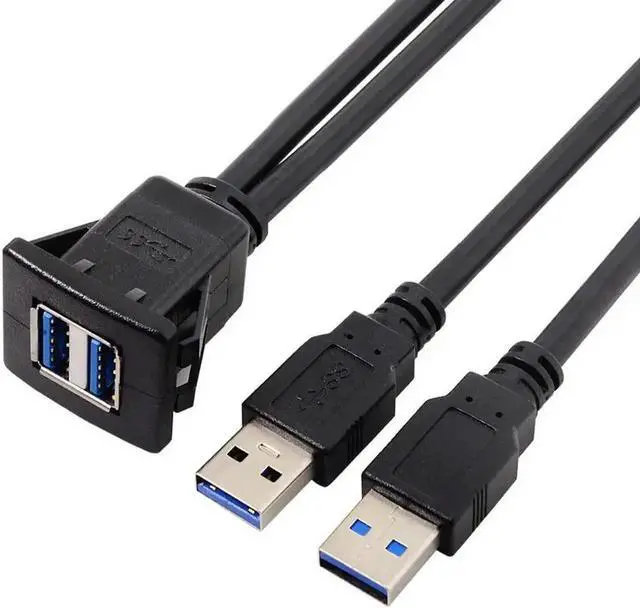 Aomoproing FOR Waterproof Dual USB 3.0 Extension Latch Mount Car AUX Cable 1m for Dashboard Panel