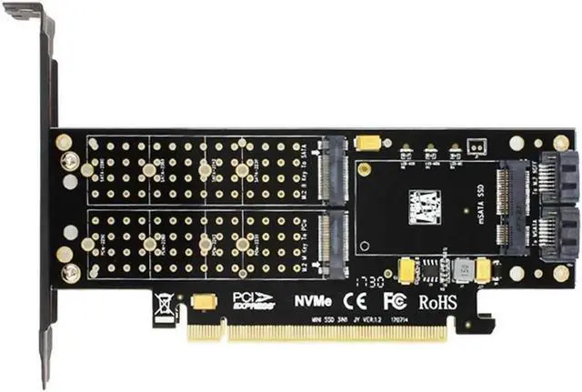 • Aomoproing SK16 M.2 NVMe SSD NGFF TO PCI-E3.0 X16 adapter M Key B Key mSATA interface card Suppor PCI Express 3.0 3 in 1 dual 12v+3.3v