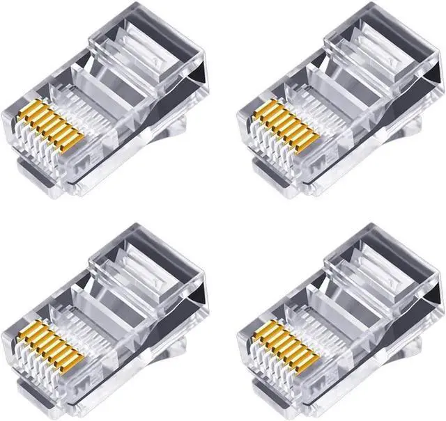 • Aomoproing 100Pcs RJ45 Connector 6U Gold Plated Pass Through Ethernet Cables Module Plug Network RJ-45 Crystal Heads Cat5 Cat5E