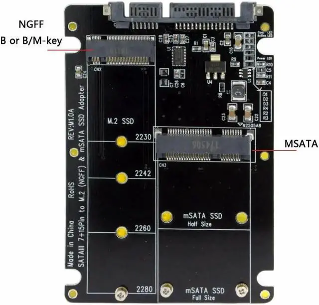 FOR SATA 22Pin to M. 2 NGFF B-key mSATA SSD for Adapter Converter Case Enclosure