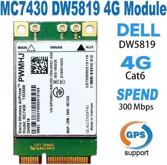 • Aomoproing MC7430 LTE 4G Module DW5819 FDD-TDD LTE CAT6 HSPA+ GNSS WWAN Card USB 3.0 MBIM interface PCIe mini 4G Card