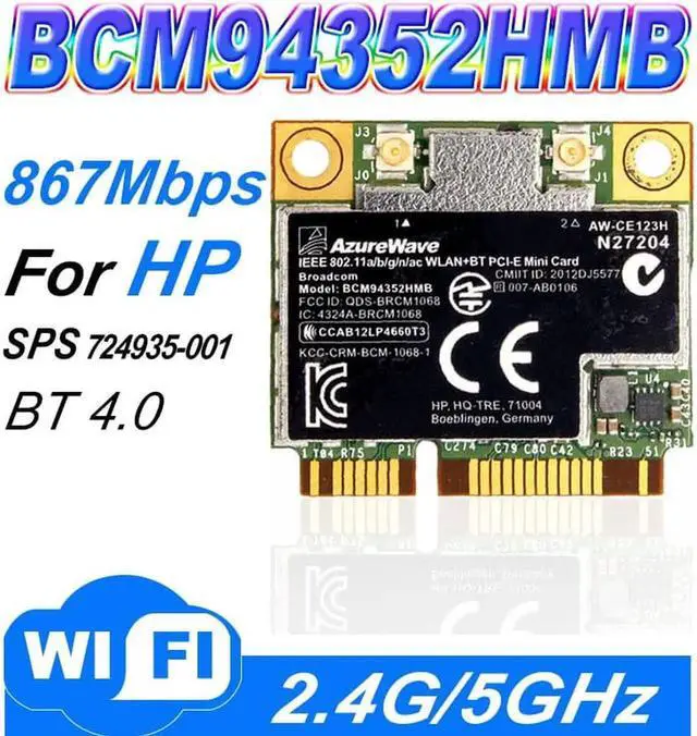 • Aomoproing BroadCom BCM4352 BCM94352HMB Half Mini PCIe PCI-express Wireless WIFI WLAN BT Bluetooth Card 802.11AC 867Mhz for 724935-001
