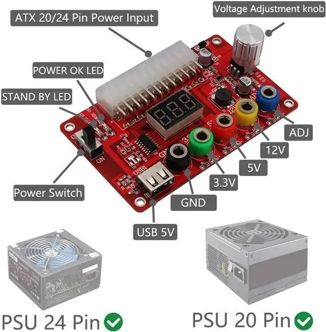 Aomoproing 24 Pins ATX Power Supply Breakout Board and Acrylic Case Kit Module Adapter PC Power Connector Support 3.3V/5V/12V 1.8V-10.8V(ADJ) (1pcs)