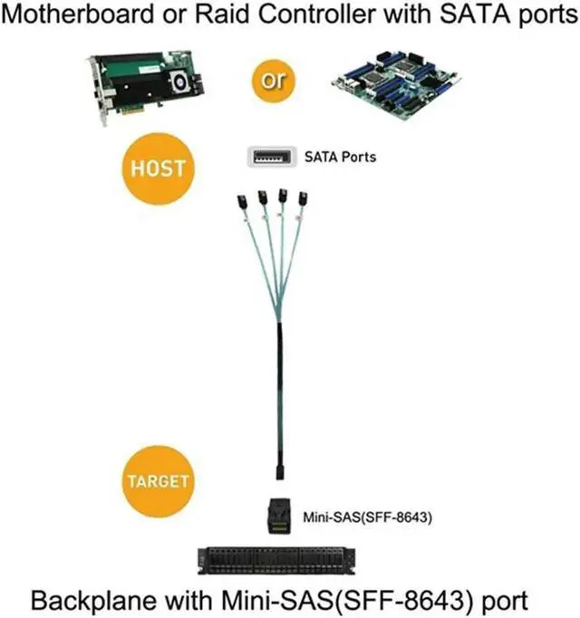 • Aomoproing Ruth's sister Internal HD Mini SAS (SFF-8643) Target - 4X SATA (Host) Cable, SFF-8643 To 4X SATA Cable HD Mini SAS Host 2Pieces