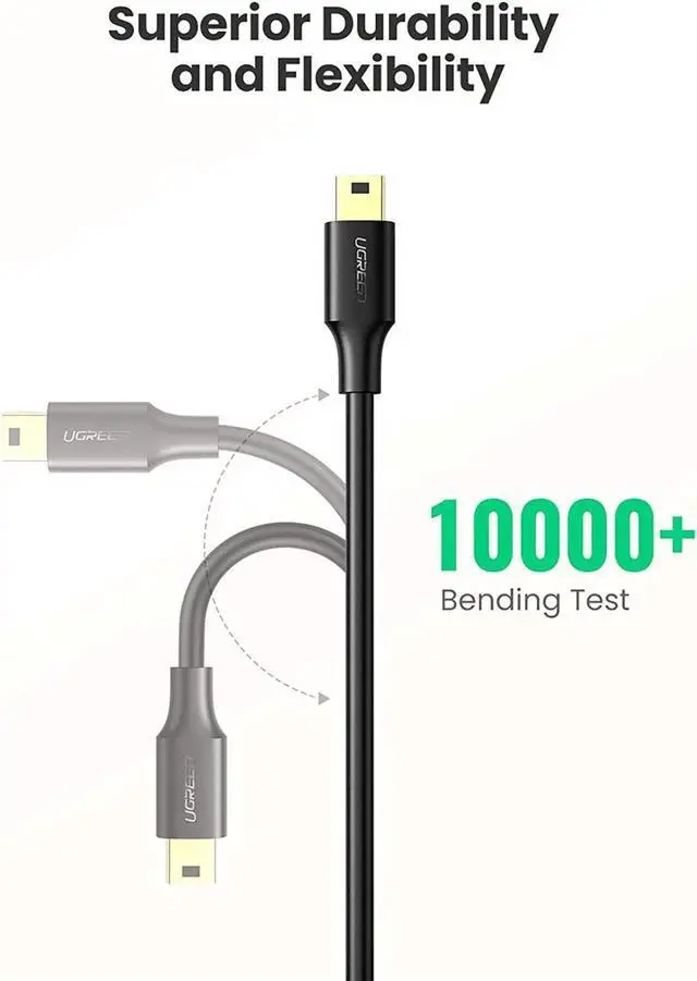 SuperSpeed for Transfer & Charging: UGREEN mini USB cable supports the speed at up to 480 Mbps for data transfer which is backward compliant with full-speed USB 1.1 (12 Mbps) and low-speed USB 1.0 ( 1.5 Mbps) and provides 2A power charging for devices with mini port.
