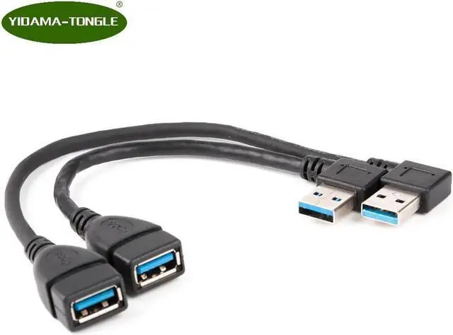 Aomoproing 2 x pc USB 3.0 Male to Female Super Speed Computer USB 3.0 Extension Cable Left and Right Angle Black extending cable