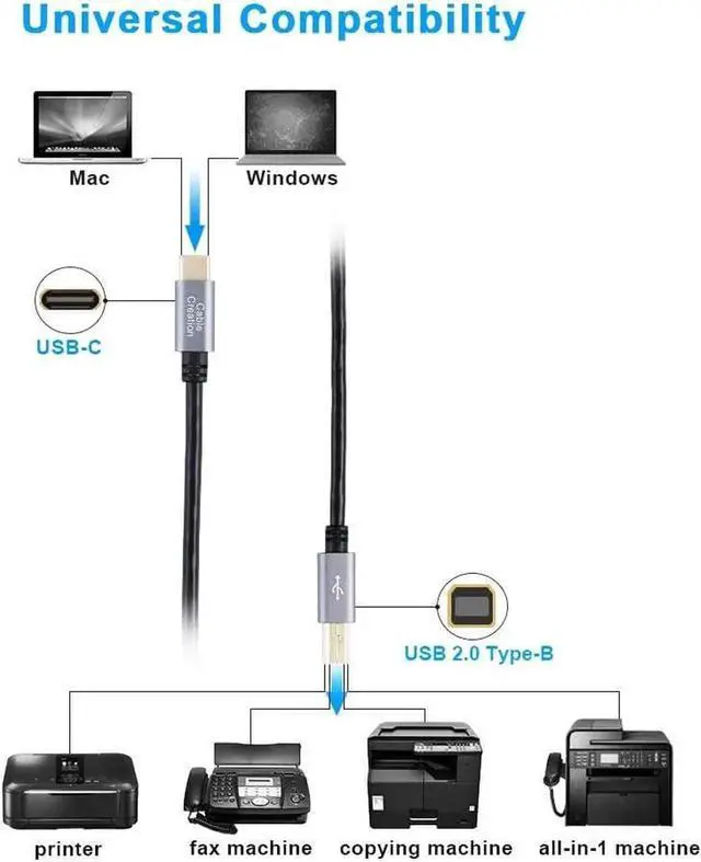 USB C to USB B CableConnects USB-C enabled devices (Apple MacBook, Surface Book 2, Chromebook Pixel) to USB-B 2.0 devices and peripherals (legacy printers, hubs and hard drives, Yamaha Casio Digital Piano MIDI Controller Electric Keyboard)