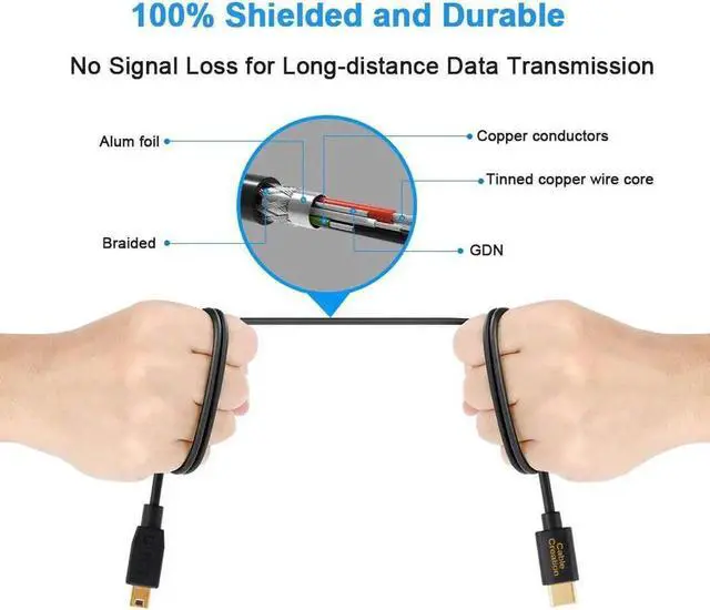 Superior Cable Quality: Corrosion-resistant bare copper conductors, gold plated connector and foil & braid shielding provide the mini usb to usb cord maximum conductivity and minimize data loss
