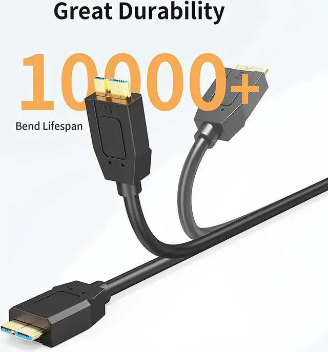 10Gbps Super Speed: This USB 3.1 Type C to Micro B cable supports ultra-fast data transfer rate up to 10Gbps for transferring files from Solide State Drives (SSD) (Please