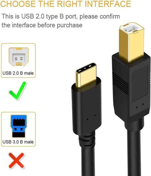 USB-C to B cable connects USB-C enabled devices (MacBook, Surface Book 2, Chromebook Pixel. etc) to USB-B 2.0 devices and peripherals (legacy printers, hubs and hard drives, Yamaha Casio Digital Piano MIDI Controller Electric Keyboard, etc. )