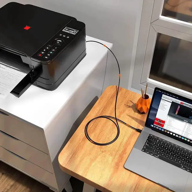 USB 2.0 B male is Target side, compatible with USB Type B port such as a multifunction, laser or thermal printer, desktop document scanner, midi controller, midi keyboard, development board, UPS, or other legacy device from Arduino, Brother, Canon, CyberPower, Dell, Epson, Fujitsu, HP, LOGEAR, Lexmark, and Panasonic