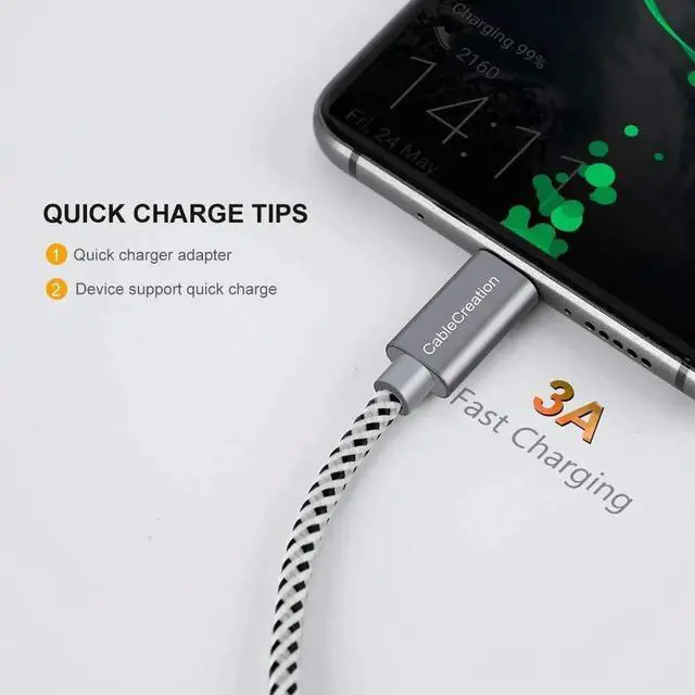 3A Fast Charging & Data Sync: Output power up to 3 Amp, support quick charge (QC), built in with 56K ohm resistor to protect your devices and charging adapters from damage. Supports USB 2.0 data speed up to 480Mbps (=60MBps). ( Please Note!!! we don't recommend to connect hard drives with this cable, in this case you need a 5G/10G usb-c cable, ASIN: B013G4CHDE/ B072M7GH29 for your reference)