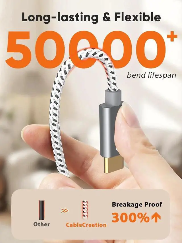 • Premium Material: The premium material used in the production of our CableCreation items, we tested with other items, and we are sure it provides a greater degree of cable durability, stability, and long life; The Nylon Braided Cord has passed 50000+ bends tests, and the Premium aluminum alloy shell and gold-plated connector add additional durability and stability to this