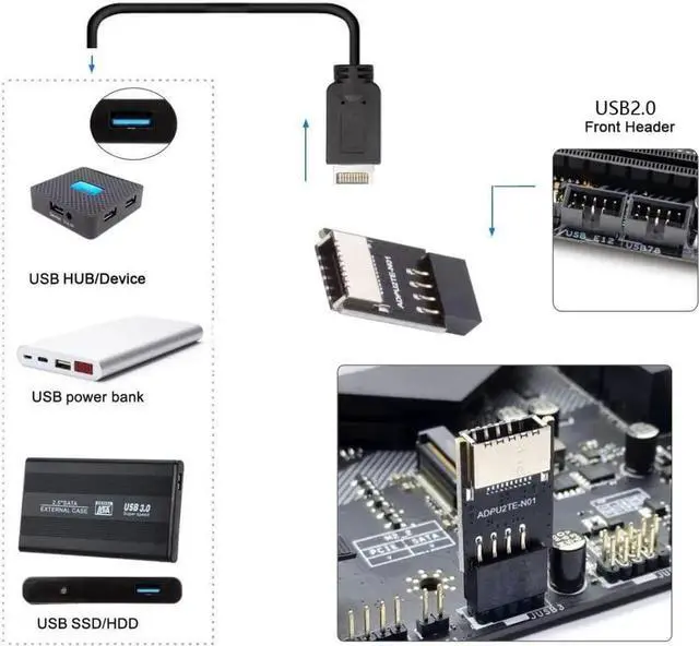 Converter plug-in for the mainboard, Fits into any USB 2.0 header.