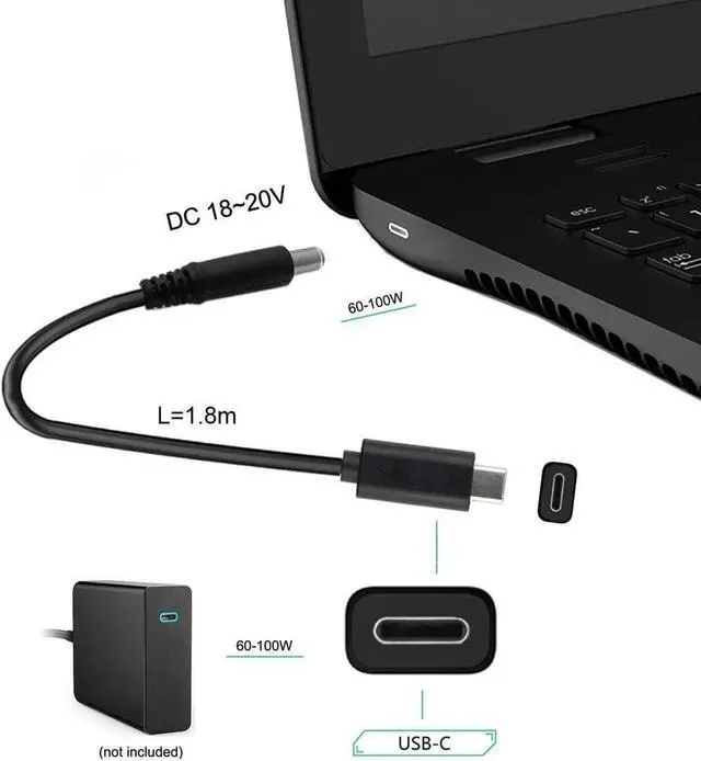 Use it with the 65W or 87W Type-C Charger to conveniently charge your Laptop with DC 18v-20v port from a wall outlet.