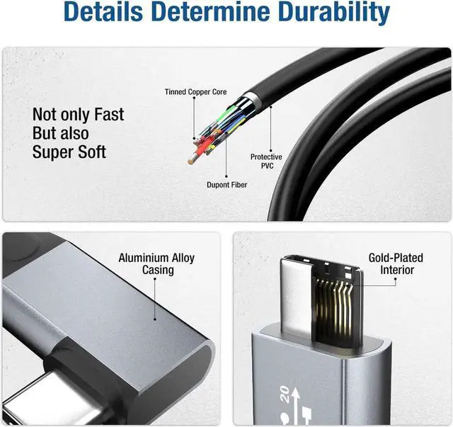 • Upgrade L Style Design The USB C 3.2 Gen2x2 cable has a more thoughtful right-angle upgrade instead of a double straight end connector, reduces the stress of the end from bending to tight, allowing you to comfortably view your phone in landscape mode to watch a movie or scroll games through media in full screen view.
