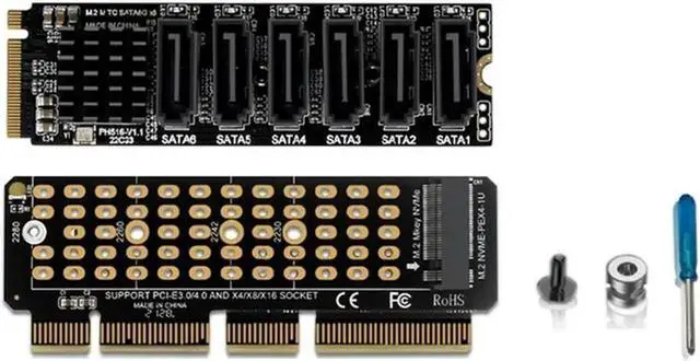 • Aomoproing M.2 NVME-PCI-E X4 X8 X16 PCIE To SATA 6Gpbsx6-Port Adapter Card ASM1166 M.2 MKEY To SATA3.0 M.2 Riser Card