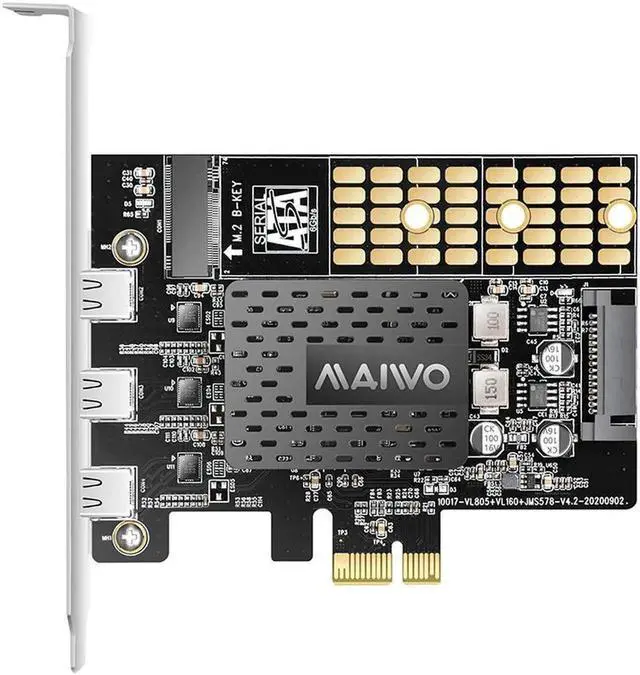 • Aomoproing MAIWO Expansion Card PCIE X1 To 3 Port Type C with Built In M.2 Solid State Disk Adapter Card Supports 2280 SSD USBC M2 SATA