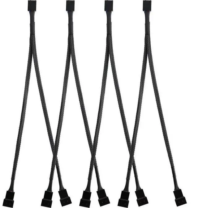 FOR 4 Pack PWM Fan Splitter Cable Y Splitter Computer PC Fan Power Cable 4 Pin 1 to 2 Converter, Black Sleeved Braided