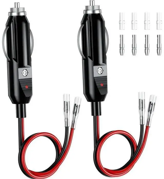 FOR 2 Pack 12V Fused Replacement Male Plug Adapter with Leads & LED Light, 16AWG Extension Cable with 15A Fuse C