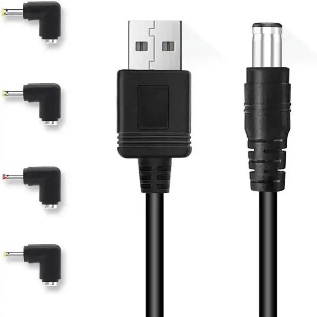 FOR USB to DC 5.5 x 2.1 mm Barrel Jack Center Pin Positive Power Cable Cord with 4 connectors 5.5 x 2.5, 4.0 x 1.7, 3.5 x 1.35, 2.5 x0
